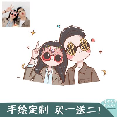 手绘q版卡通头像真人照片转信漫画人物定制情侣动漫微设计情头画 虎窝淘